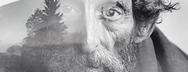 Добавьте маску слоям с пейзажем и при помощи растушеванной черной кисти откройте больше лицо мужчины: