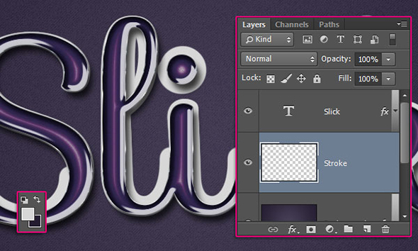 Установите в качестве первого цвета #d7d7d7, создайте новый слой под слоем с текстом и назовите его “Stroke”, затем нажмите клавишу Enter/Return, чтобы выполнить заливку по контуру.