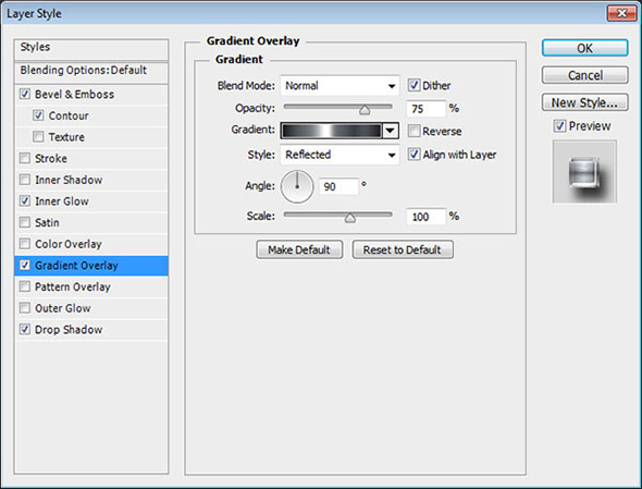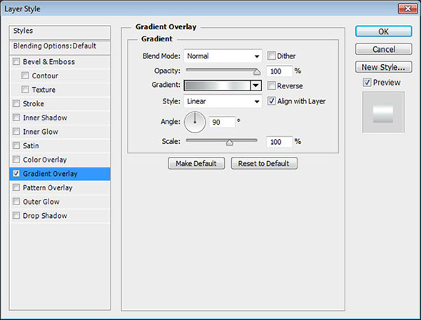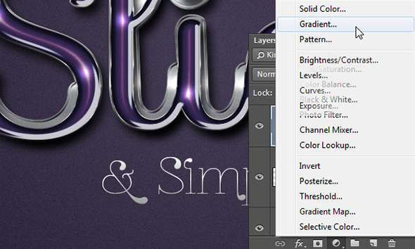 Кликните дважды по слою с подписью, чтобы применить к нему стиль слоя Gradient Overlay/Перекрытие градиента. Выберите градиент “Aluminum 5″ из файла “CHROMES.grd ”.
