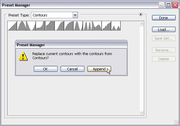 Кликните Append/Добавить, чтобы добавить контуров.