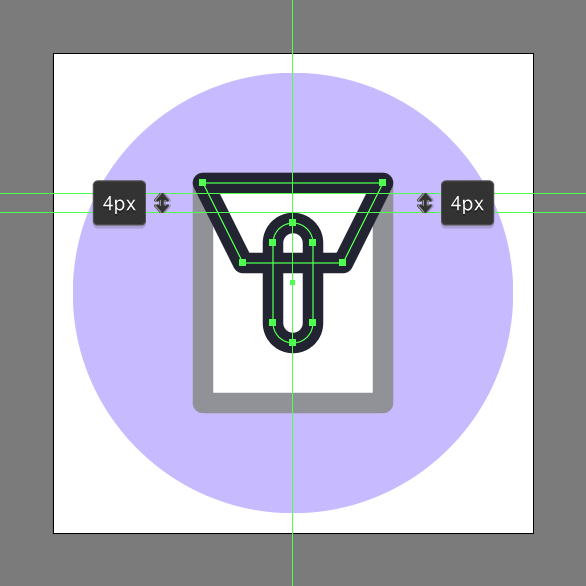 Инструментом Direct Selection/Прямое выделение (A) выделите левый нижний угол маленького прямоугольника и передвиньте его на 8 px правее. Сделайте то же с правым нижним углом.