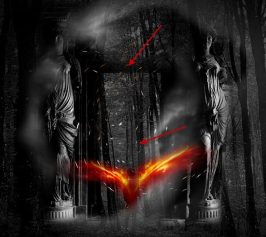Копируйте ее и вставьте в наш документ между слоем леса и врат. Масштабируйте слой при необходимости: