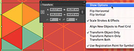 Выберите 'More Options' в палитре Transform.