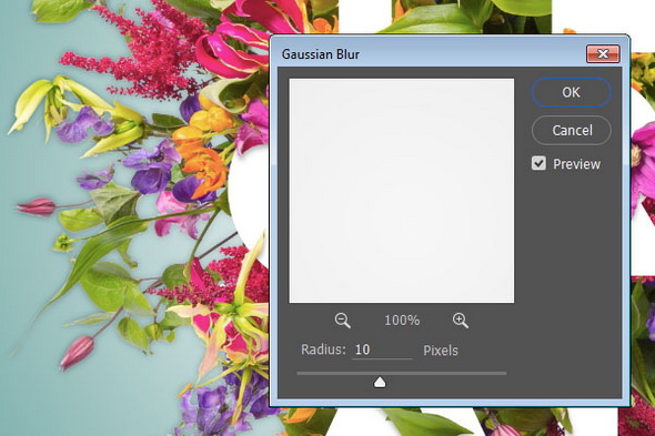5. Примените Filter > Blur > Gaussian Blur / Фильтр > Размытие > Размытие по Гауссу и установите радиус на 10.