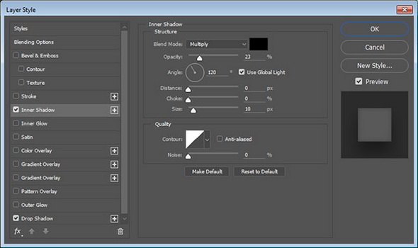 2. Добавьте Drop Shadow / Тень с параметрами, как показано ниже.