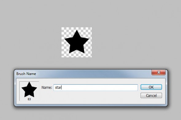 Создадим новый докумен 100 на 100 пикселей и нарисуем звездочку, из который в свою очередь сделаем кисть (Edit — Define Brush Preset)