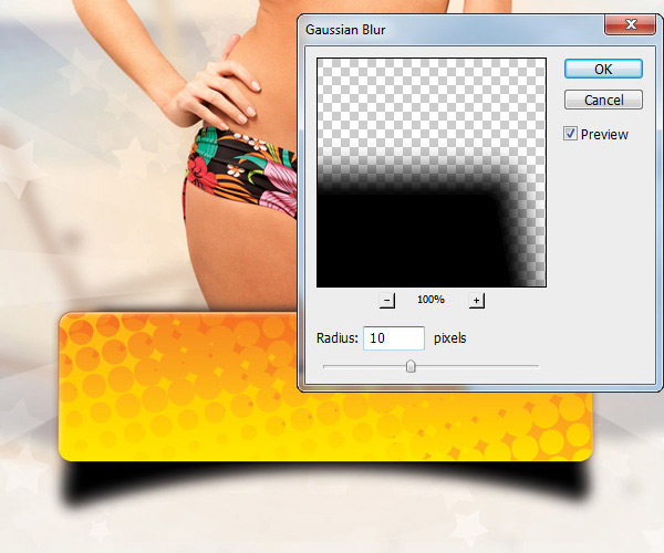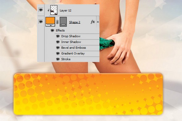 Подготовим место для текста. Сделаем девушку немного меньше и поднимем выше. Теперь что бы не путаться, все слои с девушкой, фоном и проч. объеденим в группу. Далее возьмем инструмент Rounded Rectangle Tool (U) и нарисуем плашку как на скриншоте ниже: