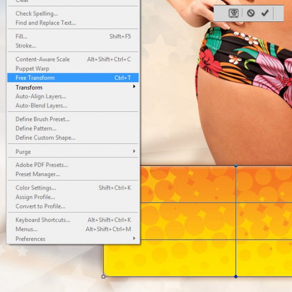 Оставаясь на этом слое выбираем Edit — Free Transform (ctrl+T)