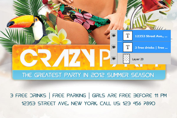 Сейчас самый разгар лета, все отдыхают на море, ходят на пляж и наслаждаются жарким солнцем и прохлодительными напитками. На пляжах раздают флаера на вечеринки и прочие мероприятия. И вот глядя на один из таких флаеров я решил попробовать сделать нечто подобное (а получилось даже лучше). Данный урок изначально расчитывался не для новичков, но в нем все расписано довольно хорошо, поэтому, я думаю, при желании абсолютно любой сможет выполнить его.