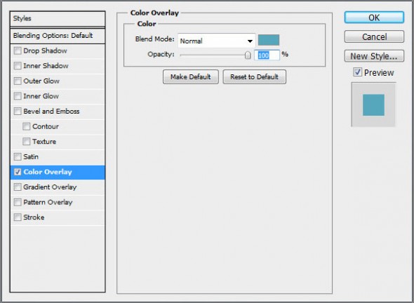 Сделаем этот эффект более мягким, добавив стиль Color Overlay с уветом #56a7bb