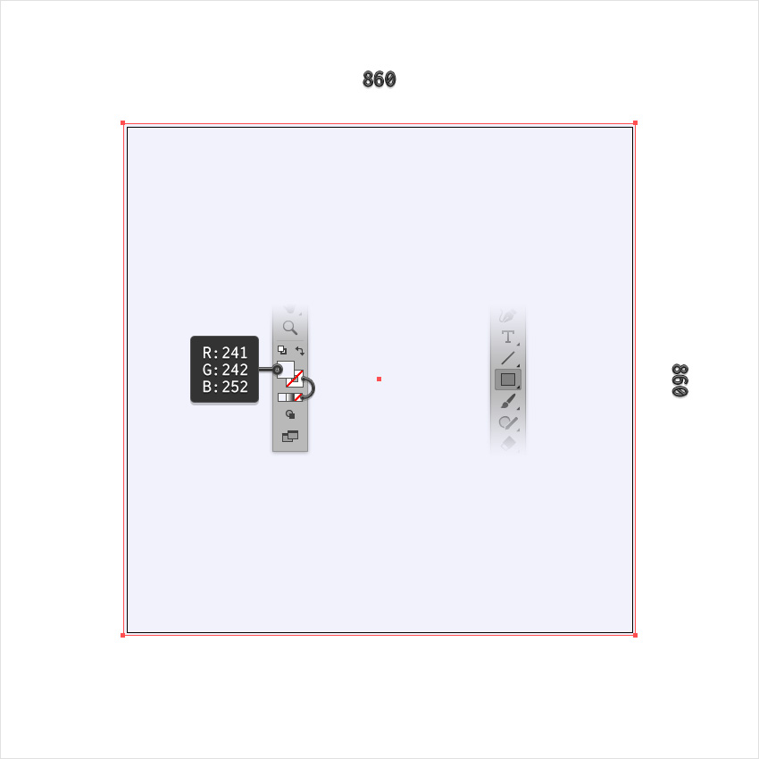 Инструментом Rectangle/Прямоугольник (M) растяните квадрат со стороной в 860 px. Он должен накрывать рабочую область. Укажите квадрату цвет заливки: R=241 G=242 B=252, и отсутствие обводки.