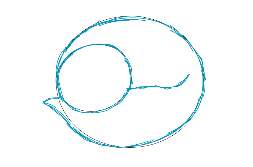 Начнем создание наброска. Инструментом Pencil/Карандаш (N) обрисуйте круги как показано ниже. Выделите линию хвоста. Если вы нарисовали что-то лишнее, пользуйтесь инструментом Eraser/Ластик (Shift-E), чтобы избавиться от лишних штрихов. Чтобы не стереть лишнее, выделяйте штрих, который хотите удалить, прежде чем применить ластик.