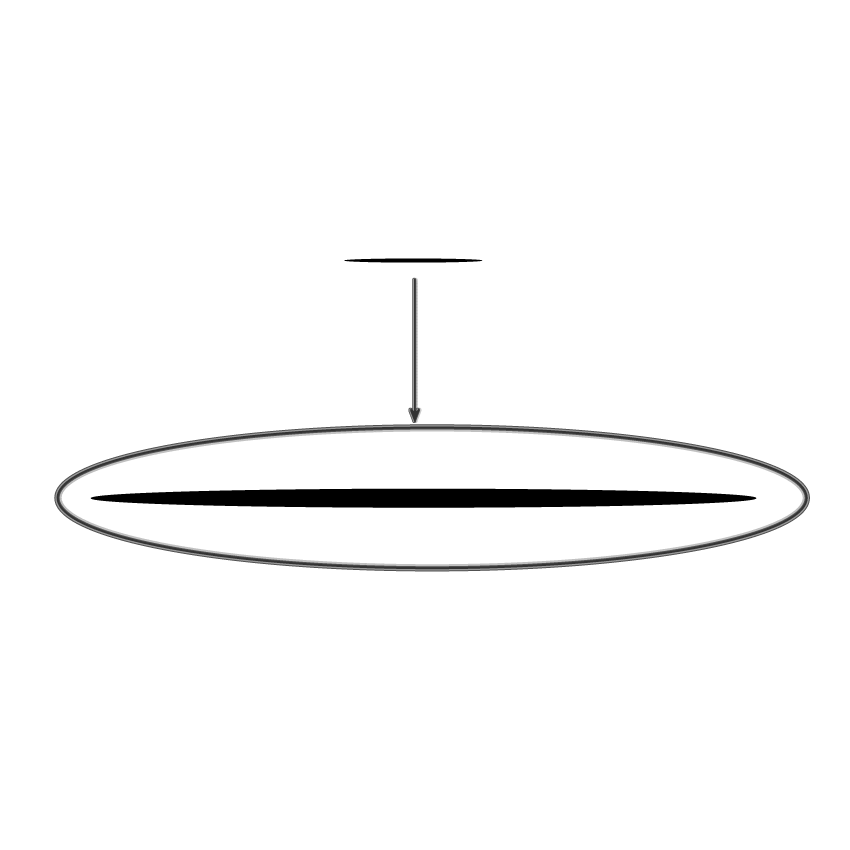 Инструментом Ellipse/Эллипс (L) нарисуйте длинный тонкий овал без обводки и с заливкой черного цвета. Ниже вы видите этот овал в оригинальном размере и увеличенном.