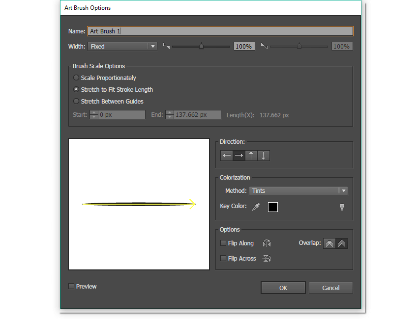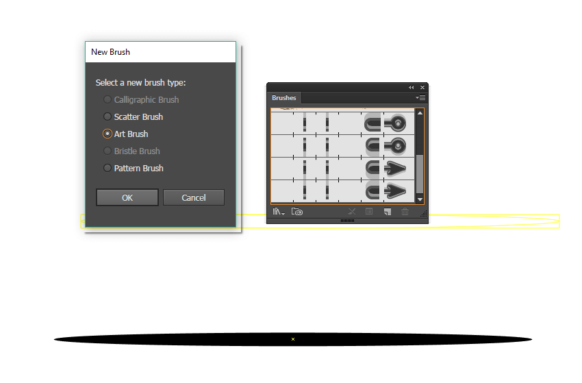 Перетащите овал в палитру Brush/Кисть. Появится окно, в котором вам нужно будет выбрать тип Art Brush/Объектная кисть и нажать OK.