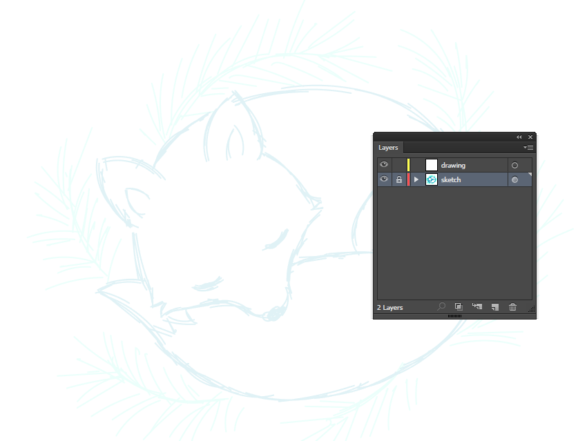 На время пока мы будем обводить набросок, снизьте Opacity/Непрозрачность слоя с наброском в палитре Transparency/Прозрачность и заблокируйте слой.