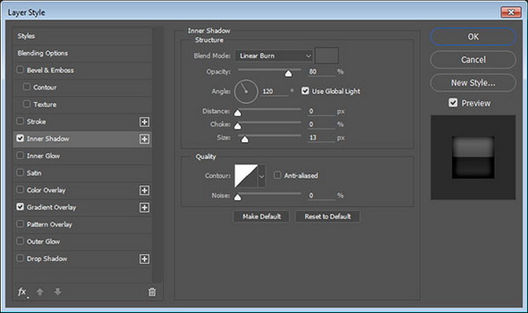2. Добавьте Inner Shadow / Внутренняя Тень с такими параметрами: