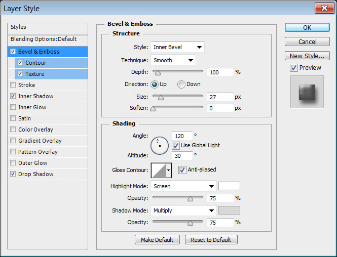 Bevel and Emboss / Тиснение (Цвет тени в Shadow Mode = #d8d8d8)