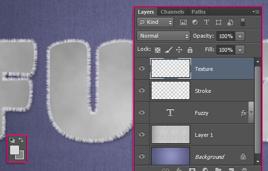 Смените Режим Наложения (Blend Mode) для слоя “Texture” на Soft Light / Мягкий свет. Это добавит тексту пушистости.