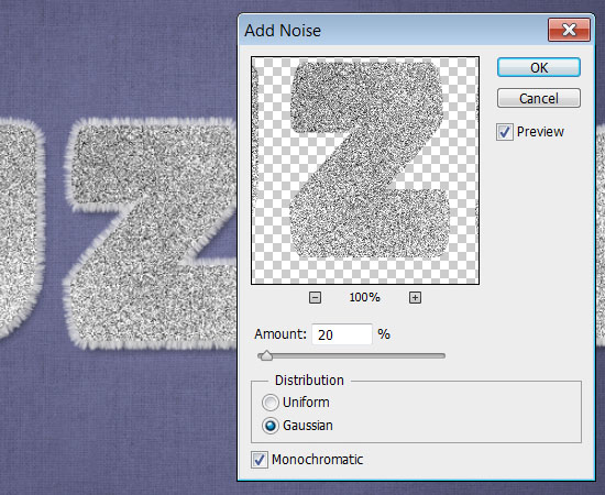 Укажите первым цветом цвет полос, а в качестве фонового — белый. В меню выберите Filter > Noise > Add Noise / Фильтр > Шум > Добавить шум. Укажите параметры как на картинке ниже.