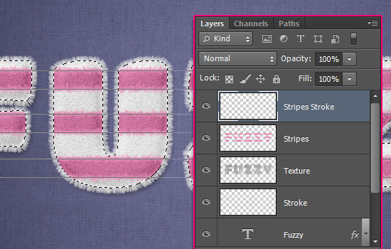 Создайте новый слой, назовите его “Stripes Stroke”. Убедитесь что первый цвет совпадает с цветом полос, нажмите клавишу Enter/Return 3 – 5 раз, чтобы «распушить» полосы.