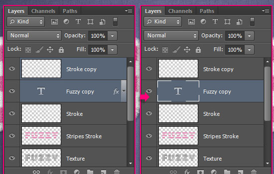 Дублируйте слои текста и “Stroke”, затем кликните по слою правой кнопкой и выберите Clear Layer Style / Очистить стили слоя.