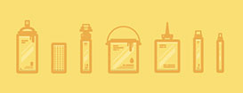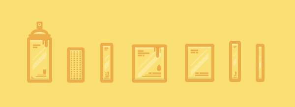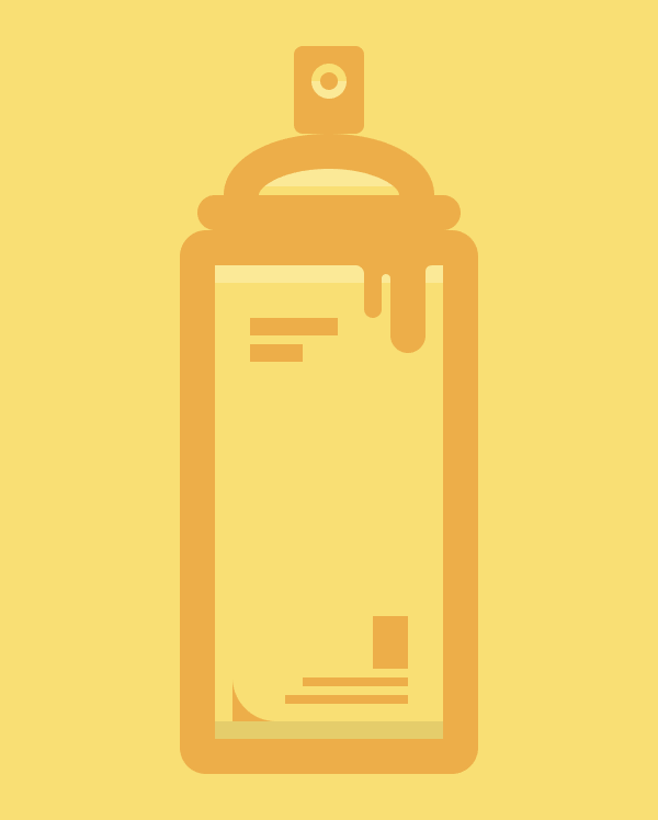 Создайте пульверизатор при помощи инструмента Rounded Rectangle/Прямоугольник со скругленными углами и начинайте добавлять детали, экспериментируя с различными типами линий (толстыми, тонкими, длинными, короткими). Также добавьте подтеки краски в правой части баллончика при помощи инструмента Rounded Rectangle/Прямоугольник со скругленными углами.