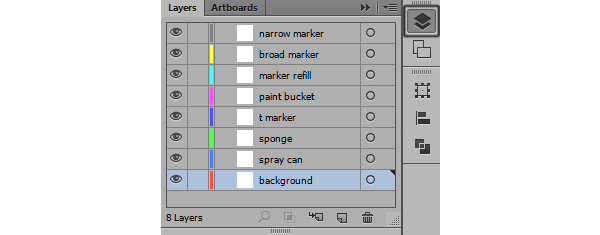 Каждая иконка состоит из ряда элементов. Чтобы было понятно где что лежит, мы рекомендуем работать в различных, соответственно названных слоях. Так вам будет удобно работать над каждой иконкой отдельно. Ниже вы видите пример такого разбиения на слои, где каждый слой назван в соответствии с содержанием. Создайте по слою для каждой иконки.
