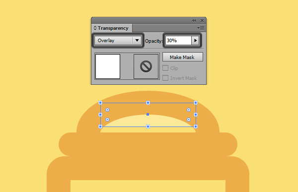 Смените Blending Mode/Режимы наложения и Opacity/Непрозрачность прямоугольников и обрежьте их при помощи обтравочной маски размером в 18 x 46 px.