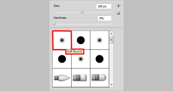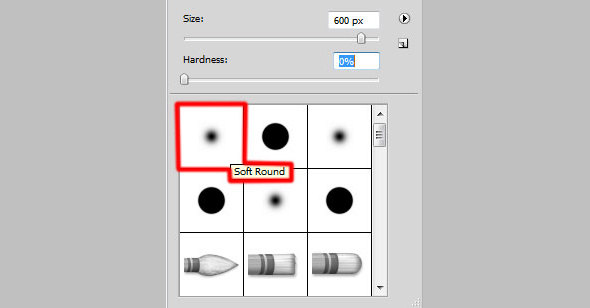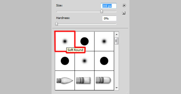 Создайте новый слой. Выберите кисть Soft Round/Круглая мягкая черного цвета и с параметром Opacity/Непрозрачность в 10%. Затемните ею края.