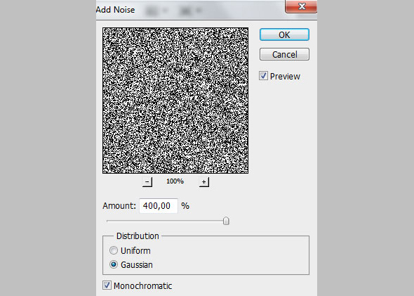 Создайте новый слой и примените к нему Filter > Noise > Add Noise/Фильтр>Шум>Добавить шум.