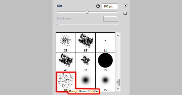 Создайте еще один новый слой. Выберите кисть Rough Round Bristle/Круглая с грубой щетиной черного цвета и порисуйте ею по краям.