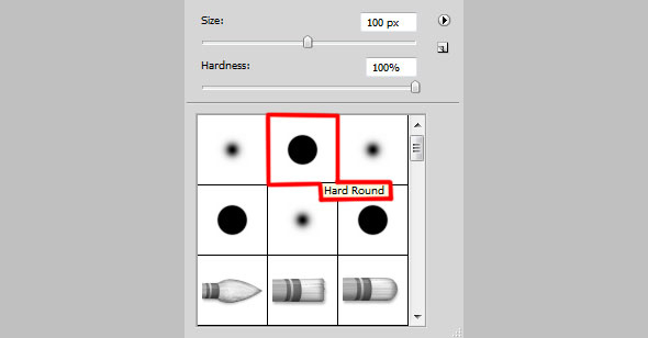 Укажите слою с подтеками маску, нажав на иконку Add layer mask/Добавит слой-маску в нижней части палитры Layers/Слои. Выберите кисть Hard Round/Жесткая круглая черного цвета.