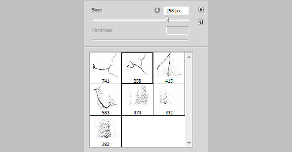Создайте новый слой и загрузите кисти Grunge_Brushes_007_by_Tackybrush. Черным цветом рисуйте этими кистями так, как показано на второй картинке ниже.