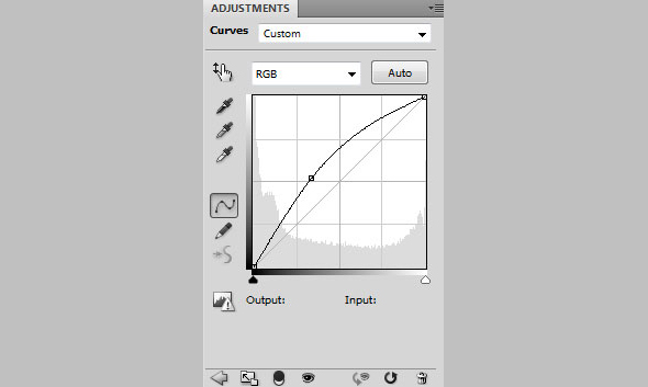 Создайте новый корректирующий слой (Create new fill or adjustment layer) типа Curves/Кривые и настройте его как показано ниже.