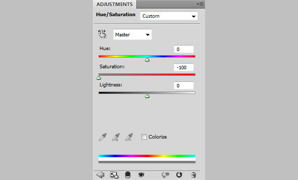 В нижней части палитры Layers/Слои кликните по иконке Create new fill or adjustment layer/Создать новый корректирующий слой или слой-заливку и выберите вариант Hue/Saturation / Оттенок/Насыщенность.Настройте параметры как показано ниже.