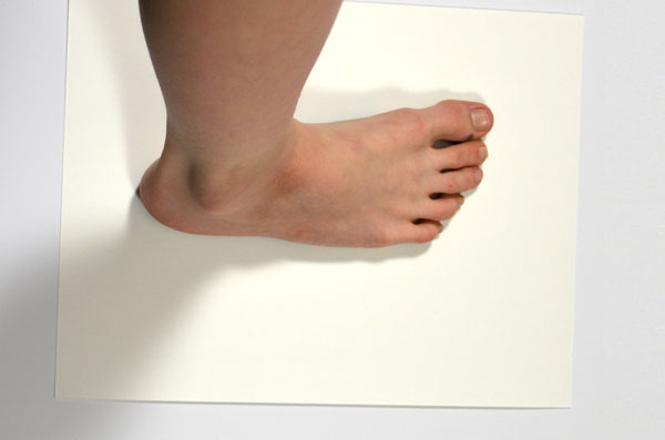 Отклейте картон, посмотрите что получилось. Мышцы ступни контролировать не так легко как рук, поэтому возможно вам придется предпринять несколько попыток, пока не добьетесь идеального соприкосновения ступни с поверхностью.