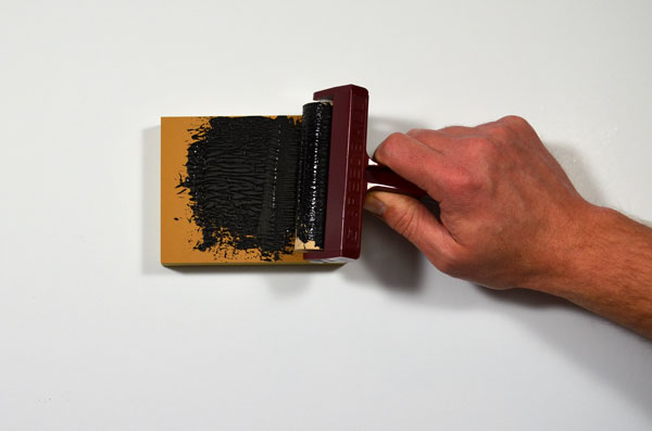 При помощи валика размажьте краску так, чтобы валик оказался в краске.