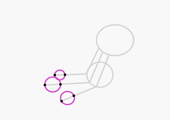 Рисуем круг в конце каждого пальца. Средний или средние пальцы должны быть самыми крупными. Последний круг на заднем плане будет самым маленьким, потому что он самый удаленный от зрителя.