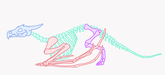 Конечно, нет необходимости каждый раз, когда вы рисуете дракона, рисовать его скелет. Это только наглядный пример для вас. Вот, что необходимо видеть, когда вы смотрите на кучу костей: