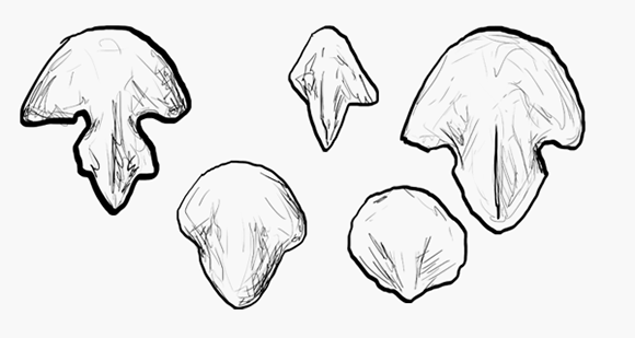 Начнем с передних лап. Видите сердце на ножках и еще одно существо за ним с руками, как щупальца? Сделайте такой набросок.