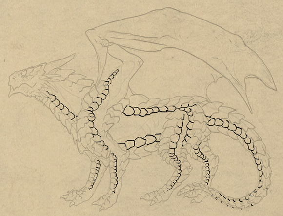 Если ваш дракон полностью будет покрыт чешуей или броней, тогда вам не нужно рисовать все мышцы. Просто задайте форму тела и все. В нашем варианте напряженные мышцы являются обязательными.