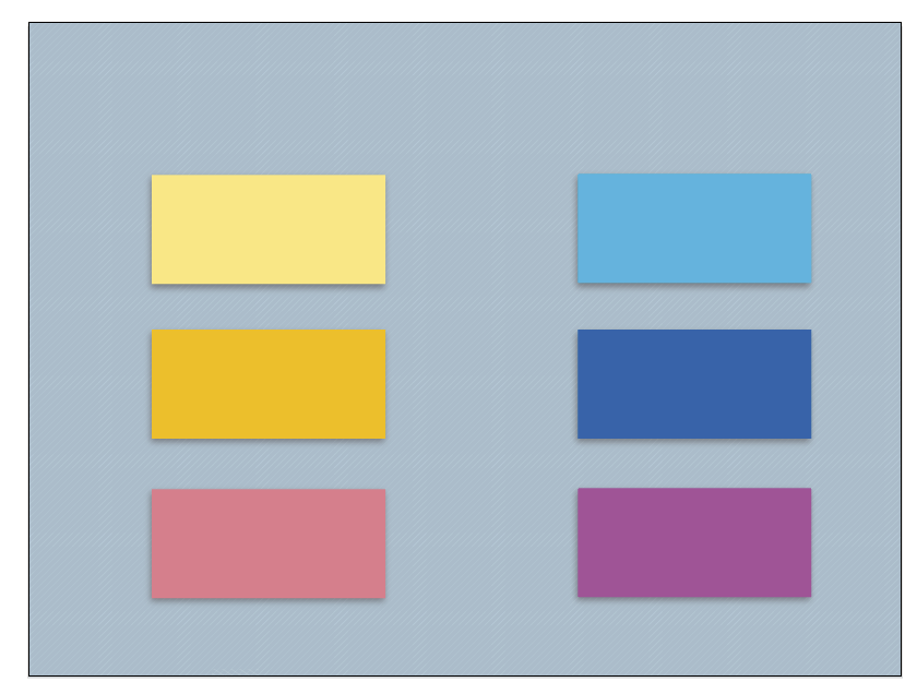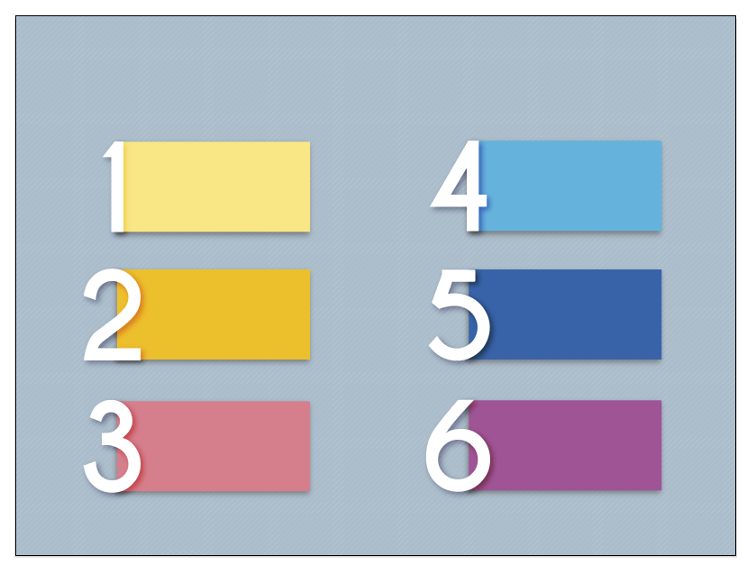Мы нарисуем шесть прямоугольников и укажем им заливку выбранных нами цветов, а также отсутствие обводки.
