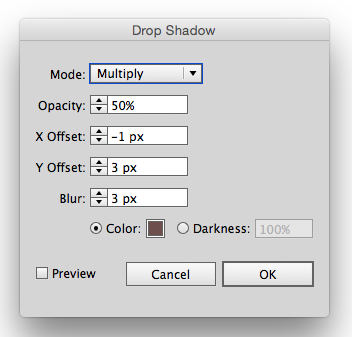 Укажите прямоугольникам эффект тени. Для этого в меню выберите Effect>Stylize>Drop Shadow/Эффект>Стилизация>Тень и укажите параметры как показано ниже.