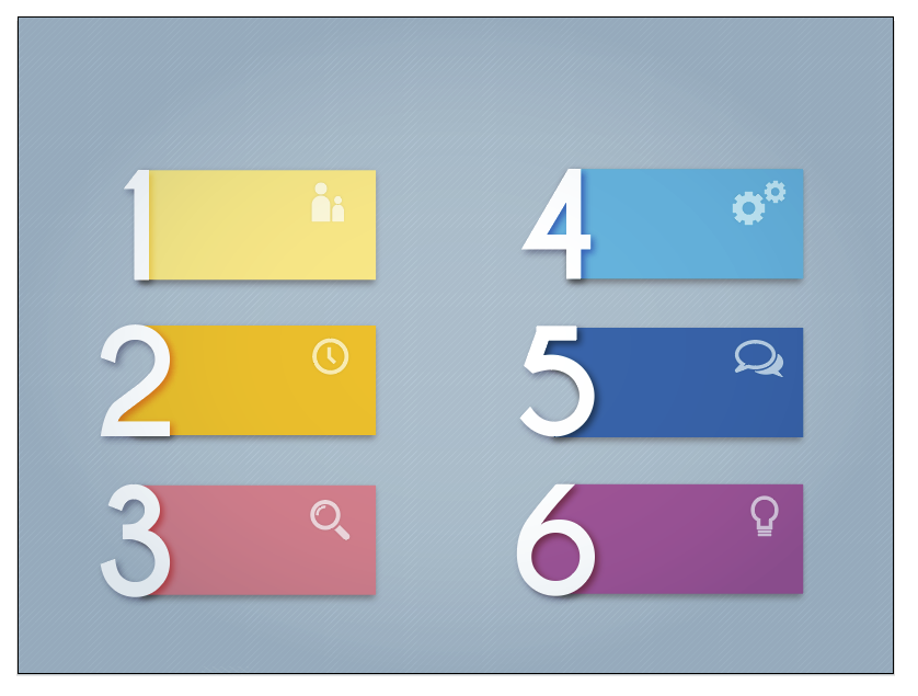 Нам понадобится шесть иконок — по одной для каждого баннера. Они будут соответствовать типу информации в баннере. При желании вы можете найти практически любые иконки в Интернете. Но мы все же создадим свои.