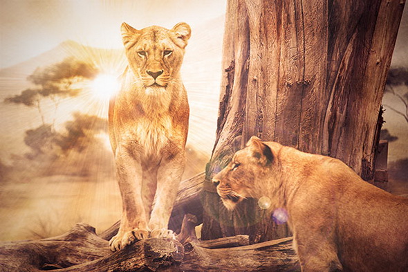 Откройте фото со львами и разверните его горизонтально при помощи Image > Image Rotation > Flip Canvas Horizontally / Изображение > Вращение изображения > Отразить холст по горизонтали.