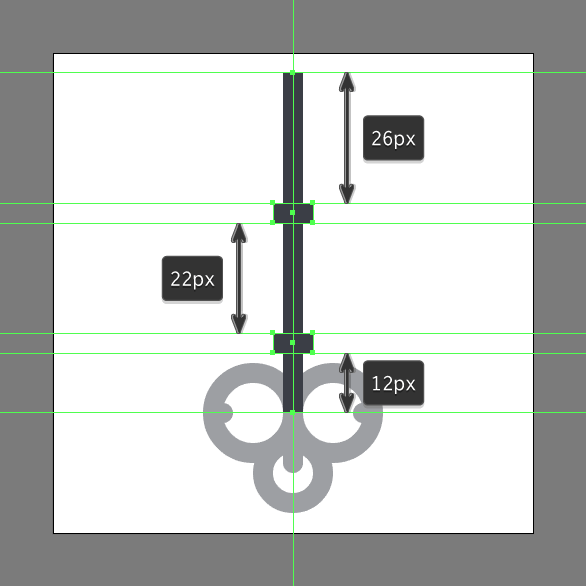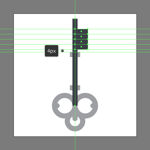 На линию насаживаем два прямоугольника размером 8 x 4 px цвета #383C44 как показано ниже.