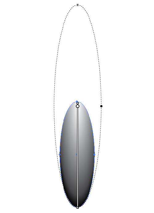 1. Нажмите (Ctrl +N), чтобы создать новый документ. Укажите желаемые имя и размеры и нажмите ОК. Возьмите инструмент Ellipse/Эллипс (L) и нарисуйте продолговатую фигуру в форме риса. Возьмите инструмент Gradient/Градиент (G), выберите radial радиальный градиент от белого цвета к черному и растяните его как показано ниже. При помощи Gradient Tool измените форму градиента, сделав его продолговатым.