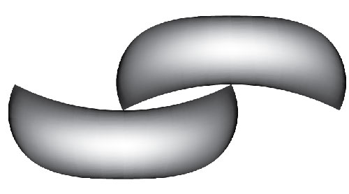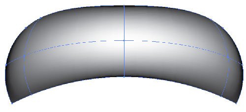 5. Укажите обеим изогнутым фигурам темно серый цвет заливки. Возьмите инструмент Mesh/Сетчатый градиент (U) и кликните посредине одной из фигур, чтобы создать сетку градиента. Укажите точке более светлый оттенок серого. Также укажите крайним средним точкам черный цвет. Таким же способом раскрасьте вторую изогнутую фигуру. Выделите обе изогнутые фигуры и пошлите их на задний план, нажав Ctrl+Shift+[.