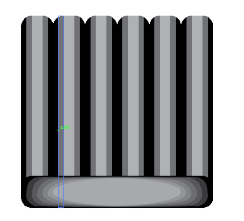 4. Создайте еще один такой же прямоугольник, но на этот раз в вертикальном положении. Укажите ему линейный градиент цветов: черный, светло-серый, черный. Расположите прямоугольник как показано ниже.