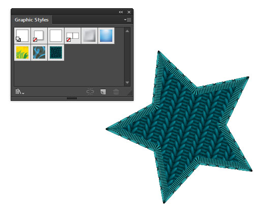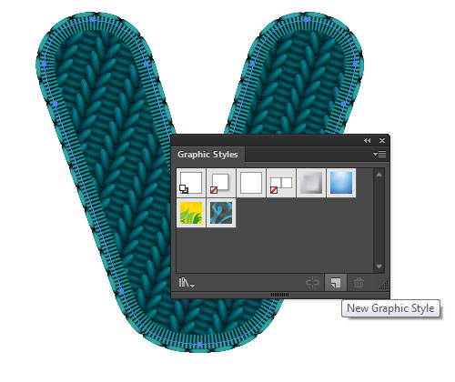 2. Если вам понравился эффект, вы наверняка захотите его сохранить. Для этого выделите букву и откройте палитру Graphic Styles/Стили графики. Кликните по иконке New Graphic Style/Новый стиль графики, укажите имя и нажмите OK.